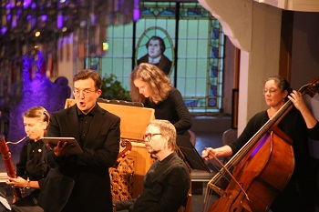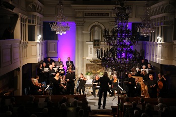 Bereits zu Beginn der ersten Sinfony füllte sich der ganze Kirchenraum mit den wunderbar warmen und weichen Tönen der barocken Instrumente, die jedes für sich einen einzigartigen Klang entfalteten. Das Dresdner Ensemble „Cappella Sagittariana“ ist auf die Musik der Renaissance und des Frühbarock spezialisiert und war mit einer Besetzung von 17 Musikern angereist. Diese haben eindrucksvoll demonstriert, wie viel Ausdruck und Energie in vermeintlich „alter“ Musik stecken. Herausragend waren die Klangpracht der barocken Bläser und die Farbigkeit der historischen Streichinstrumente.