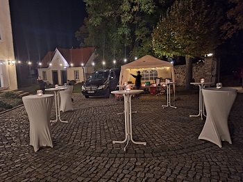 Die Verpflegung des Orchesters wurde von fleißigen Köchinnen und Bäckerinnen sowie einem emsigen Küchenteam sichergestellt. Dies wurde von den Musikern hoch gelobt und wertgeschätzt. Ebenso wie die wunderbare Atmosphäre nach dem Konzert auf dem Kirchplatz, die von vielen Helfern geschaffen wurde. Mit sehr viel Liebe wurde die Suppenbar mit Tischen, Lichterketten und Kerzen gestaltet. Viele Gemeindeglieder haben mit angepackt und kostenlos Equipment zur Verfügung gestellt.